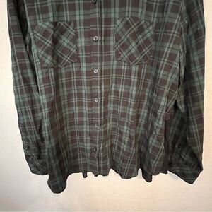 Women's Beach Lunch Lounge Green & Black Plaid Button Down Shirt