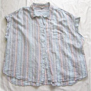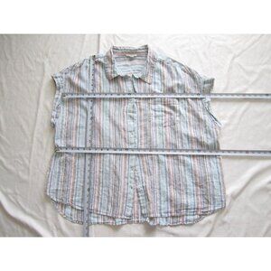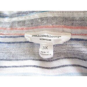 Women's Beach Lunch Lounge Linen Blend Stripe Short Sleeve Shirt Sz 3X (WB269)