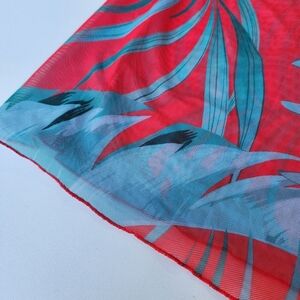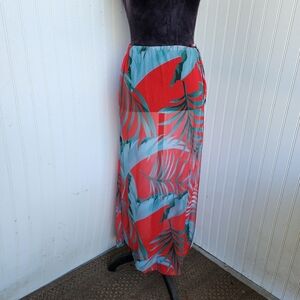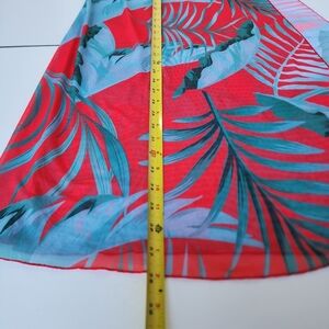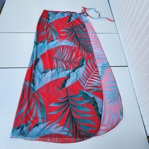 Women’s Beach Swimsuit Cover Up Skirt Stretch Hawaiian Palm Orange Green Tie M