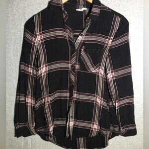 Womens Beachlunchlounge Button Up Shirt Plaid Black Red Fall Winter Casual
