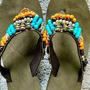 Women’s Beaded Flip Flops - Size M (7-8) - NWOT