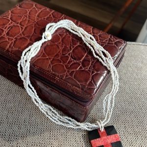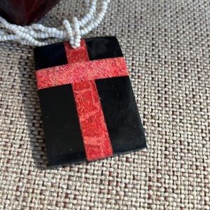 Women’s Beaded Necklace with Red Cross Pendant‎