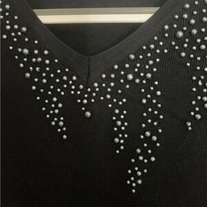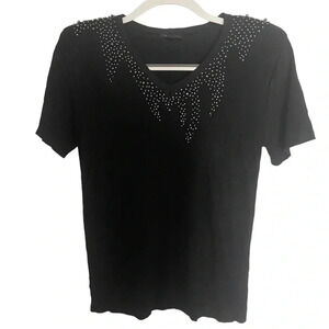 Women’s Beaded Short Sleeve Tee with Shoulder Pads. Item is pre-loved in very good condition. All beads are in place. The item does have shoulder pads.
