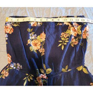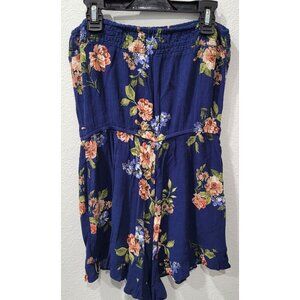 Preowned in very good clean condition. Women's Becool Strapless Blue Floral Romper with Pockets Size S