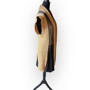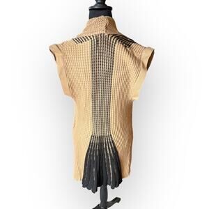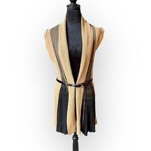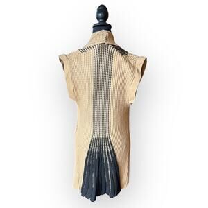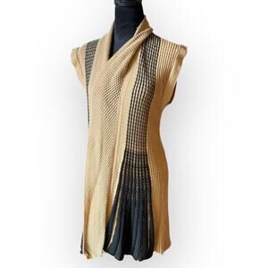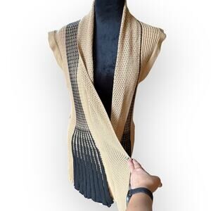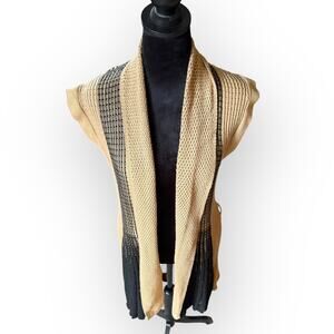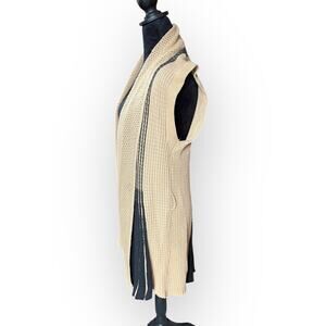 Women's Beige & Black Striped Knit Open Front Cardigan Sweater Size Medium