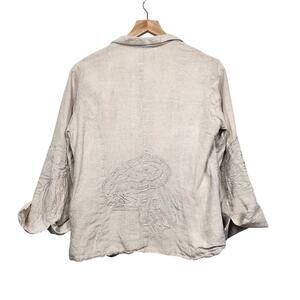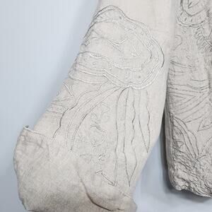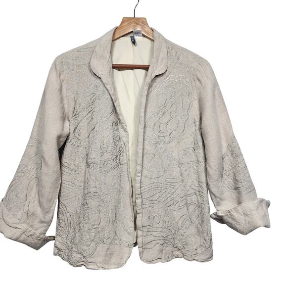 Women's Beige Embroidered Anu 100% Linen Open Front Blazer Sz Small