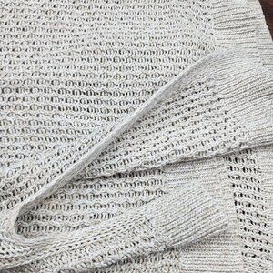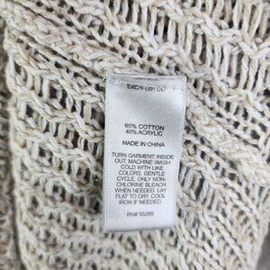 Womens Beige Express Open Knit Sweater 3/4 Sleeve Round Neck Size M/L