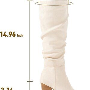Features: These chic knee-high boots feature a pointed toe, a relaxed slouchy silhouette, and a sleek beige faux suede finish. The chunky 3.15-inch heel offers all-day comfort and support, while the side zipper makes putting them on and taking them off a breeze. Perfect for adding a sophisticated touch to dresses, skirts, or jeans.