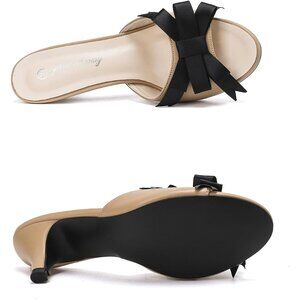 ⚡Women's Beige Kitten Low Heels Mules Sandals Cute Bowknot Open Toe Slip On