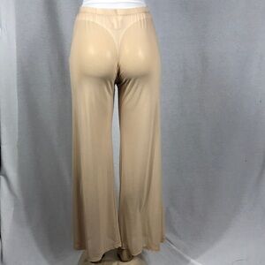Mesh elastic band waist. Flowy beige beach pants. No lining. Wide bottom.