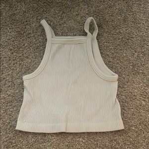 Elevate your casual wardrobe with this chic beige ribbed tank top. Perfect for layering or wearing on its own, this top offers both comfort and style. Lightly worn. One size fits all, I’m typically a small and fits me greatt