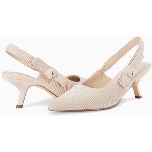 ⚡Women's Beige Slingback Kitten Heels Pointed Toe Bowknot Knitted Slip On