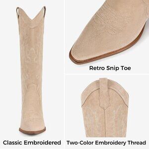 Stylish Suede Boots with Embroidery: Feature unique two-tone embroidery and pointed toe, these suede boots for women offer authentic western flair. As versatile knee high boots, they effortlessly elevate any outfit from casual to chic.