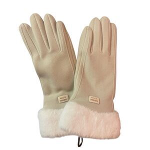 Women’s Beige Thermal Winter Gloves Faux Fur Cuff Touchscreen Compatible