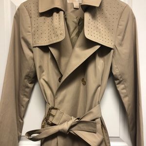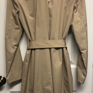 Only worn once! Women's mid-calf length light beige trench coat with gold details. 56% cotton and 44% polyester.