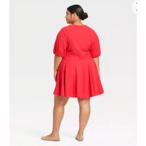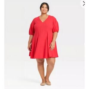 This Women's Bell Elbow Sleeve Mini A-Line Dress by Universal Thread in Red 1X is a stylish and versatile piece for any occasion. The dress features a V-neckline, short balloon sleeves, and a solid pattern, making it suitable for travel, parties, casual wear, work, and business. Made from a comfortable blend of cotton and rayon, this dress is lined and perfect for the summer and spring seasons. Its A-line silhouette and pullover closure add to its ease and simplicity, while the bell elbow sleeves give it a touch of elegance.
