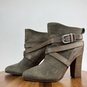 Womens Belle Sigerson Morrison Floria Taupe Brown Suede Ankle Boots Size 8 B GUC