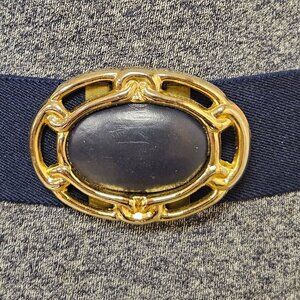 Womens Belt Elastic Cinch Belt Navy Blue Stretch Retro Gold Buckle Statement