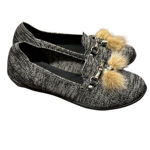 Women’s Bernie Mev New York Flats Faux Fur Tassels Shoes Size 38 Ballerina Business Casual Dresss Shoes Holidays