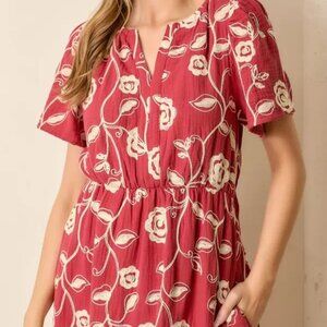 Elevate your look and still feel comfortable in the Rothwell Dress. This stunning midi dress features an embroidered floral print, short sleeves, a v-neckline, elastic waistband, and has pockets. Perfect for any occasion, keep it casual wedges or dress it up with heels.
