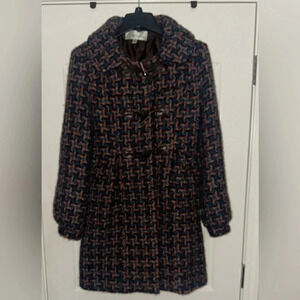 Women’s Beth Bowley Brown Print Wool Blend Coat. Size 8.