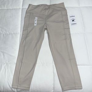 Cream leggings above the ankle. Size L. Stretchy with 2 side pockets.