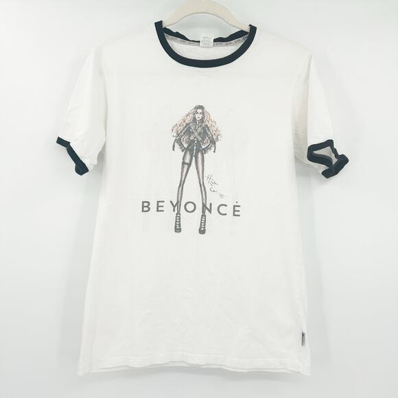 Womens Beyonce Hayden Williams Art Graphic Baseball Cotton T-Shirt in White. Size medium.