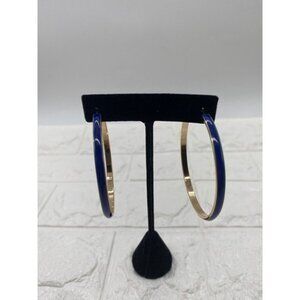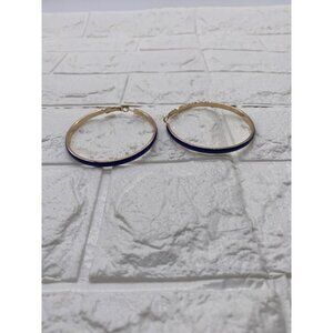 Women’s Big Enamel Hoop Earrings with Rose Gold Tone Plated, Nickel-free Stainless Steel Pin Blue
