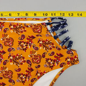 Womens Bikini Bottom Medium Orange Paisley High Waist Strappy Sides Boho Chic