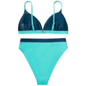Womens Bikini Swimsuit XL Blue Teal NWT 2 Piece High Waisted Triangle Cheeky Set