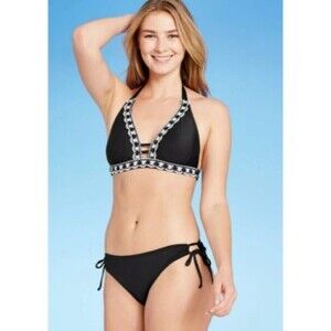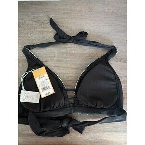 Women's Bikini Top Crochet Trim HANDMADE Kona Sol Black XS new