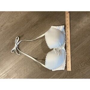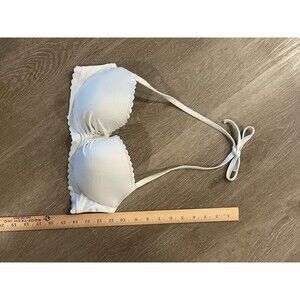 Women’s Bikini Top White Victoria’s Secret 34D Scalloped Swimsuit Swimwear