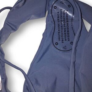 Women's Bikini Swim Bottom Grey Blue Cheeky Criss Cross Straps L NEW