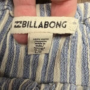 Women's Billabong Off the Shoulder Cropped Blue & Cream Rayon Blouse- Size Large