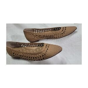 Women's Birdies Goldfinch Woven Almond Toe Flat in Tan size 7.5 Bohemian Preppy