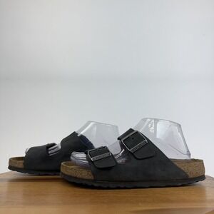Womens Birkenstock Arizona Black Leather Soft Footbed Slide Sandals Size EU 38