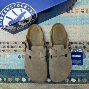Brand new and unworn Birkenstock Boston clogs in a beautiful black suede. These are the narrow fit version, coming with all original tags and the signature Birkenstock box. Please note that the color may appear slightly different in photos due to lighting. Ready to find a new home!