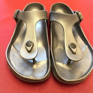 Women's Birkenstock EVA Thong Sandal EU38 US7 Regular Fit. Upper Is Excellent With Minor Scratch On Strap. Soles Are Worn.