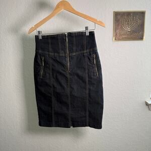 Women's Bisou Bisou Denim Blue Jean Paneled Zip Front Zip Pocket Skirt Size 8