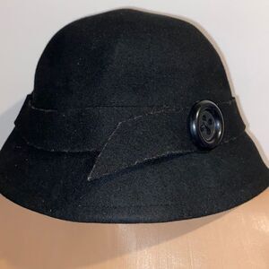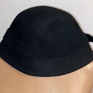 Women's Black 100% Wool One Buttoned Strap Bucket Hat One Size