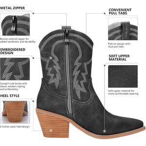 Versatile: The ankle boots can be paired with jeans or dresses for a western flair to any outfit. These cowboy boots have no age limit and can be worn by all ages. You can give it as a gift to your friends as well as elders because it really fits!