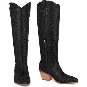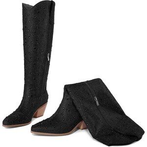 FASHION STYLE Sparkly rhinestone add a touch of glamour and sparkle to these western boots. These mid-calf boots offers a versatile style that pairs well with jeans, skirts, or dresses.