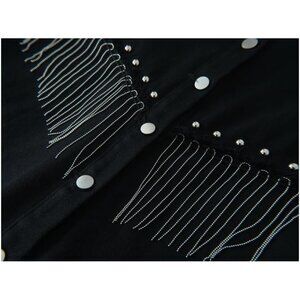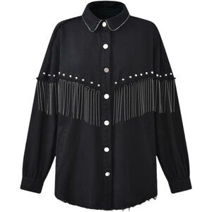 Women’s Black Apocrypha Boho Fringe Rhinestone Denim Cowgirl Jacket