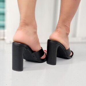 Women's Black Bandage Square Toe Sandals Chunky Heels