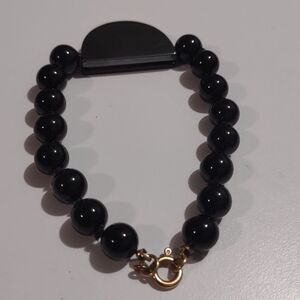 Women's Black Beaded Bracelet with Two Tone Black Pendant