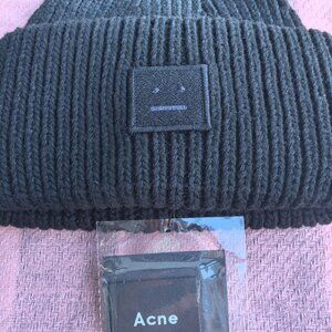 Acne Studios Pansy Face Ribbed Knit Wool Beanie