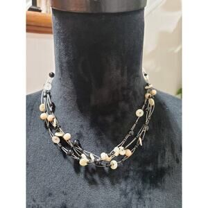 Women's Black & Beige Beaded Multilayered Stylish Short Necklace.