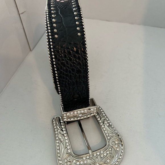 Womens Black Belt Pink,Blue & Silver Gems W/ Interchangeable Buckle Size L 41”