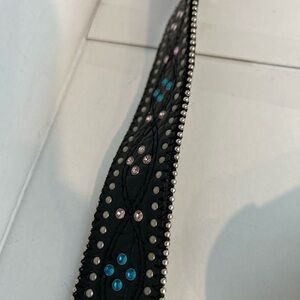 Womens Black Belt with Pink,Blue & Silver Gems