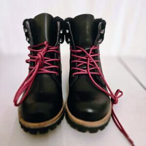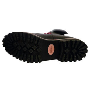 These Women's Black Blackstone QL67 Leather Boots with Shearling Trim in Size 37 are a stylish and versatile choice for the winter season. Featuring a round toe and ankle shaft style, these lace-up boots have a low 1" block heel for added comfort. The solid black color with shearling trim adds a touch of luxury, while the leather lining and upper material ensure durability. Perfect for casual occasions, these boots from Blackstone are a fashionable and practical addition to any woman's wardrobe. New without box.